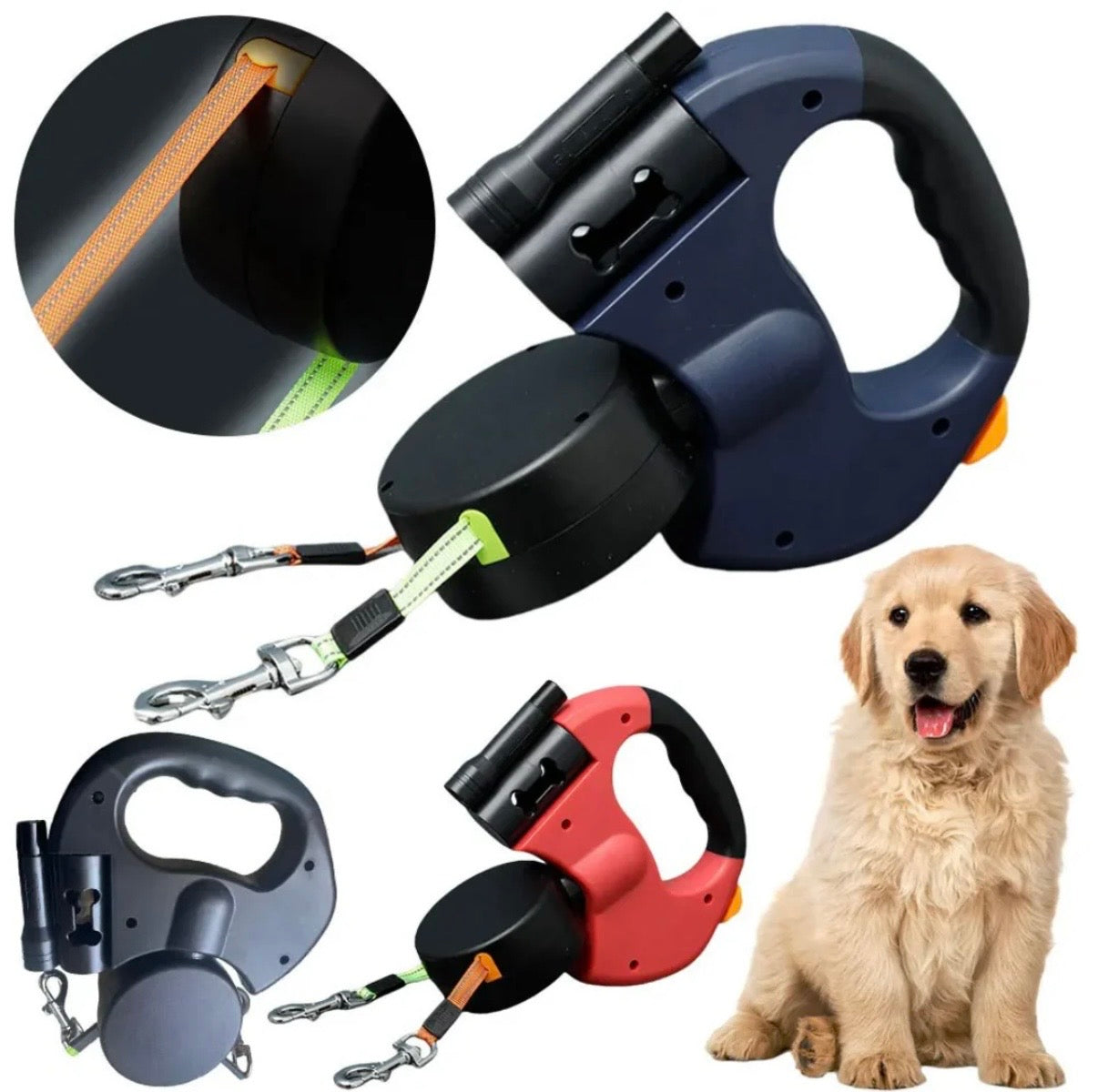 Robust, leicht und praktisch: Das 360°-Drehgelenk verhindert zuverlässig ein Verheddern der Leinen. Die integrierte LED-Taschenlampe sorgt für Sicherheit bei Dunkelheit. Geeignet für kleine bis große Hunde, mit komfortablem, rutschfestem Griff.