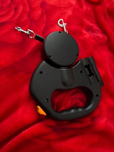"Mit zwei Hunden spazieren zu gehen war früher nervig, weil sich ständig die Leinen verheddert haben. Jetzt können sie die Seiten wechseln, ohne dass Knoten entstehen – das Drehgelenk macht’s möglich. Die Taschenlampe ist hell, liegt gut in der Hand und die Leine wirkt sehr stabil. Top!"